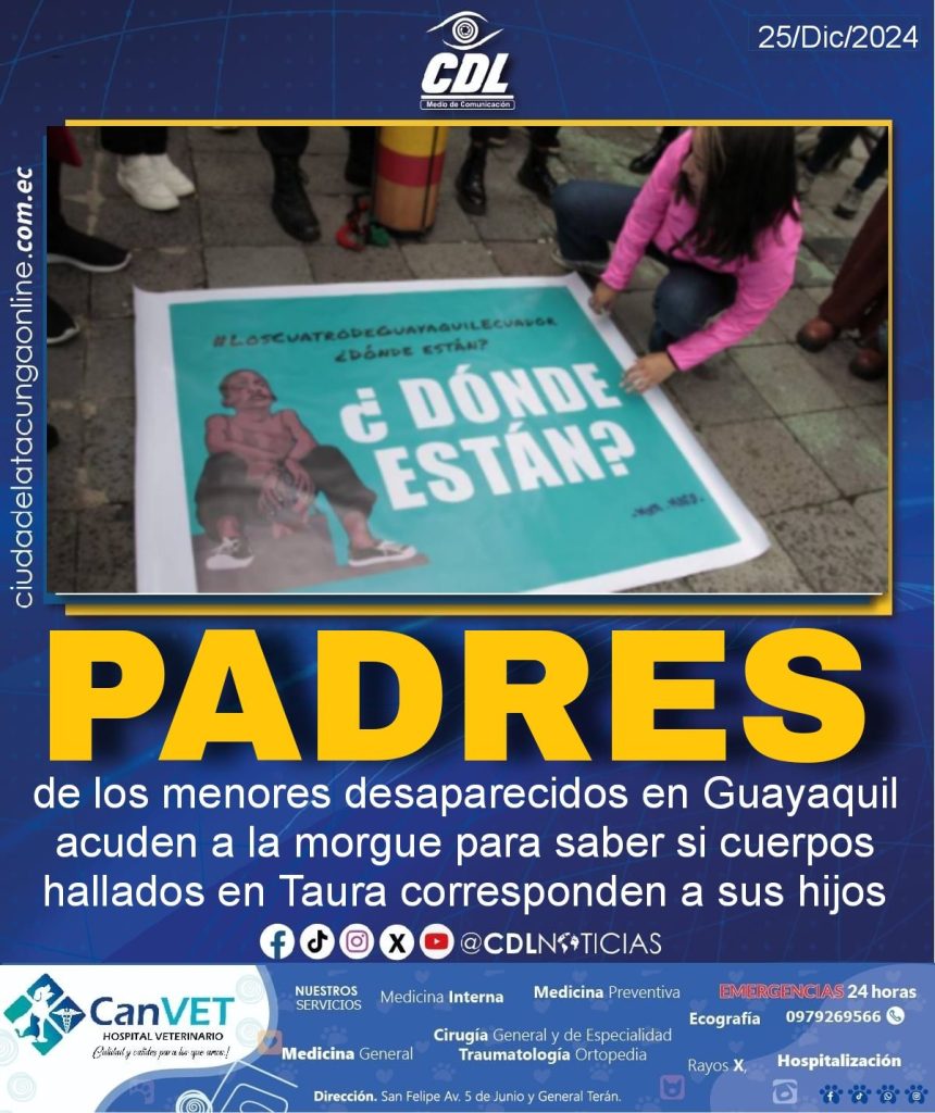https://ciudadelatacungaonline.com.ec/wp-content/uploads/2024/11/3193-Spots-El-Corazon-Ramon-Campana.mp4 La desaparición de Ismael y Josué Arroyo, de 15 y 14 años, y sus amigos Saúl Arboleda (15) y Steven Medina (11) ocurrió la noche del pasado 8 de diciembre, en el barrio Las Malvinas, en el sur de Guayaquil.] Familiares de los cuatro menores desaparecidos el pasado 8 de diciembre en la ciudad de Guayaquil, acudieron este miércoles a la morgue para entregar datos con los que se pueda cotejar la información que se extraiga del estudio a unos cuerpos calcinados hallados el martes. Uno de los familiares dijo a EFE que están ofreciendo información sobre los rasgos físicos de los menores o alguna seña para compararlos, y además, «personal de Criminalística está entrevistando a los familiares» para los exámenes de antropología, indicó Billy Navarrete, de la organización de derechos humanos que los apoya. «Si los datos no coinciden, se procederá a examen de ADN que dura 30 días», dijo Navarrete a EFE. “Si esas entrevistas sirven para identificar a los cuerpos encontrados, se lo dará a conocer. Y si no son suficientes se harán pruebas de ADN. De todas formas, los padres siguen exigiendo que busquen a sus hijos hasta tener los resultados oficiales”, agregó el abogado Fernando Bastías, miembro de la misma organización. Los familiares acudieron al Laboratorio de Criminalística y Ciencias Forenses hasta donde fueron trasladados los cuatro cadáveres hallados en una zona agreste de la parroquia Taura, en la provincia de Guayas, mientras se desarrollaban las investigaciones sobre el caso de los cuatro menores desaparecidos luego de haber sido aprehendidos por una patrulla militar. Según las primeras investigaciones, reveladas por la prensa local, los cuerpos fueron encontrados en un sector de difícil acceso, a la que solo se puede llegar en bote. Desaparición forzadaEl martes, una jueza aceptó que la desaparición de cuatro menores sea investigada como «forzada» y con «responsabilidad del Estado». La jueza Tanya Loor aceptó el recurso de hábeas corpus interpuesto por las familias de los menores y afirmó que durante la audiencia se presentaron elementos que hacen presumir que los 16 militares que actuaron en la aprehensión «no cumplieron con los protocolos establecidos para estos casos». Loor ordenó la activación de protocolos de búsqueda de los menores en todo el país y la creación de una comisión multidisciplinaria que investigue los hechos independientemente del proceso judicial. La Fiscalía ha formulado cargos contra los 16 militares por el delito de desaparición forzada, por su presunta participación en los hechos. La desaparición de Ismael y Josué Arroyo, de 15 y 14 años, y sus amigos Saúl Arboleda (15) y Steven Medina (11) ocurrió la noche del pasado 8 de diciembre, en el barrio Las Malvinas, en el sur de Guayaquil. En videos, que circulan en redes sociales, se observa que militares detienen a los menores cerca de un centro comercial y los embarcan en una camioneta de uso castrense, en la que los golpean y tienden en el piso. Los uniformados, según las primeras versiones, trasladan a los niños hacia la zona de Taura, a unos 30 kilómetros de Guayaquil, donde se ubica una de las principales bases de la Fuerza Aérea Ecuatoriana (FAE) y donde se pierde totalmente el rastro de los menores. En la audiencia judicial del martes participaron los abogados del Ministerio de Defensa y de las Fuerzas Armadas, quienes pidieron a la jueza Loor que no dé paso al hábeas corpus, debido a que los niños no se encuentran en manos del Estado y que su desaparición, según ellos, «no se dio en un contexto de custodia estatal ni de las Fuerzas Armadas». «Ellos fueron trasladados hasta las inmediaciones de la base de Taura, (pero) no existen indicios con los se pueda determinar que los niños fueron ingresados a una unidad militar», dijo el capitán Leonardo Alvear, abogado del Ministerio de Defensa. Sin embargo, el fiscal Christian Fárez señaló que en el proceso judicial que él investiga no existe ningún elemento que indique algún «acto ilícito que hayan cometido los niños». Señaló que los militares debieron haber avisado al sistema ECU911 del hecho y haber puesto a los niños en manos de la unidad especial de la Policía. Ese «procedimiento es obligatorio», mencionó. https://ciudadelatacungaonline.com.ec/wp-content/uploads/2024/11/3193-Spots-El-Corazon-Ramon-Campana.mp4