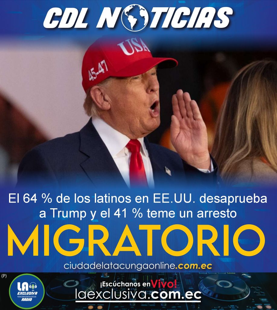 CDL Noticias https://ciudadelatacungaonline.com.ec/wp-content/uploads/2024/10/WhatsApp-Video-2025-09-19-at-11.52.34.mp4https://ciudadelatacungaonline.com.ec/wp-content/uploads/2024/05/WhatsApp-Video-2025-09-19-at-11.52.34-1.mp4https://ciudadelatacungaonline.com.ec/wp-content/uploads/2025/09/WhatsApp-Video-2025-09-19-at-11.52.34-3.mp4https://ciudadelatacungaonline.com.ec/wp-content/uploads/2025/09/WhatsApp-Video-2025-09-19-at-11.52.34-2.mp4 Latinos en EE.UU. expresan temor a detenciones migratorias y descontento con la gestión de Trump. Casi dos de cada tres votantes latinos en Estados Unidos, el 64 % desaprueban la gestión del presidente de Estados Unidos, Donald Trump, mientras el 41 % teme un arresto de las autoridades migratorias pese a tener ciudadanía o estatus legal, reveló este lunes una encuesta de la asociación UnidosUS. Pese a la desaprobación, solo 13 % de quienes votaron por Trump afirmaron que no lo harían otra vez, mientras que el 9 % se mostró indeciso sobre eso, añadió el estudio ‘Bipartisan Poll of Hispanic Voters: The Road to 2026’ (Encuesta bipartidista de votantes hispanos: el camino a 2026). Entre las prioridades de los latinos, el costo de vida o la inflación fue la más mencionada, por el 53 %, seguida de trabajo y economía (36 %), vivienda (32 %), salud pública (30 %) e inmigración (20 %). Casi cuatro de cada 10 hispanos, el 39 % indicaron que su situación económica «está peor» que hace un año y solo un 14 % opinó que está «mejor». La mitad de los encuestados, el 50 % cree que las políticas económicas de Trump empeorarán su situación, mientras que casi dos tercios, el 65 %, piensan que el presidente y los republicanos no están enfocándose lo suficiente en mejorar la economía. La encuesta, realizada del 8 al 22 de octubre, se difunde un mes después del cierre del Gobierno de Estados Unidos, que comenzó el 1 de octubre porque los demócratas exigen incluir subsidios de salud y seguro médico en el presupuesto, mientras los republicanos se niegan a negociar. El 61 % de los entrevistados culpó a los republicanos del cierre y el 22 % a los demócratas, mientras que el 52 % adelantó que apoyaría a un candidato demócrata en las elecciones de medio término de 2026 y un 28 % a un republicano. La encuesta refleja la atención política que han despertado los votantes latinos en Estados Unidos, donde el 48 % de ellos votó por Trump en las elecciones presidenciales de noviembre de 2024 frente al 51 % que sufragó por la demócrata Kamala Harris, según el Pew Research Center. Latinos y su opinión de migración Uno de cada tres latinos, el 33 % reportó en la encuesta que empleadores han perdido trabajadores porque hay personas que temen un arresto migratorio en su camino al trabajo, y el 29 % de los niños han perdido clases porque sus padres tienen miedo de una detención. Más de siete de cada 10, el 72 % expresaron su oposición a un fallo de la Corte Suprema de Estados Unidos que en septiembre permitió al Servicio de Inmigración y Control de Aduanas (ICE) usar la apariencia, el idioma y el trabajo de una persona como justificación para su arresto. Casi seis de cada 10, el 59 % piensan que las libertades y derechos civiles se han vuelto menos seguros, y cerca de la mitad, el 49 % teme ser víctima de violencia política o que afecte a alguien cercano. California: hispanos preocupados El estudio incluyó una muestra especial del estado con más latinos, California, donde el 50 % compartió su temor a la violencia política y el 60 % percibió que sus libertades se sienten menos seguras ahora. Además, el 74 % se opuso a los arrestos de ICE basados en la apariencia y el idioma, el 32 % mencionó la pérdida de trabajadores por temor a las detenciones y el 30 % reportó niños que faltan a las escuelas por miedo a las redadas migratorias. El 82 % de los latinos del estado manifestaron su «profunda preocupación» de que el Congreso no esté cumpliendo con su rol de ser un contrapeso al Ejecutivo de Trump. La encuesta, de la firma BSP Research, se realizó a 3.000 latinos a nivel nacional mediante llamadas, mensajes de texto y paneles digitales, con un margen de error de 1,8 %. https://ciudadelatacungaonline.com.ec/wp-content/uploads/2025/08/PROMO-POSGRADOS.mp4https://ciudadelatacungaonline.com.ec/wp-content/uploads/2025/08/PROMO-UTC-General.mp4