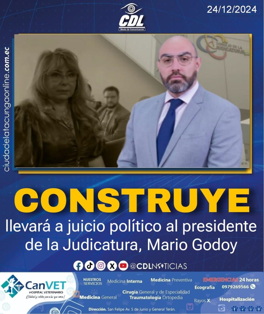 https://ciudadelatacungaonline.com.ec/wp-content/uploads/2024/11/3193-Spots-El-Corazon-Ramon-Campana.mp4 La bancada Construye anunció que llevará a juicio político al presidente del Consejo de la Judicatura, Mario Godoy, tras la denuncia de la jueza Nubia Vera durante la audiencia de Verónica Abad. Así lo informó el asambleísta Jorge Peñafiel este lunes 23 de diciembre del 2024. El legislador de Construye pidió el apoyo de las distintas bancadas del Legislativo, al tiempo que recalcó que las declaraciones de la magistrada son de «extrema gravedad«. Además, detalló que será él quien interpele al presidente del Consejo de la Judicatura «por actuar como apéndice de Daniel Noboa presionando a jueces y fiscales para perseguir a sus adversarios políticos y personales». «Parece que no han aprendido nada del caso Metastasis, Purga y Plaga. Los hechos denunciados carcomen la independencia judicial, la división de poderes y los principios democráticos que rigen el Ecuador. Fiscalía debería iniciar investigaciones por obstrucción de la justicia«, agregó. Durante la audiencia, donde fue aceptada la acción de protección para que la Vicepresidenta retome sus funciones, Nubia Vera, de la Unidad Judicial de la Familia de Quito, denunció que, previo a la diligencia, había recibido amenazas en su contra y presiones para emitir la sentencia. «Supuestamente vino el presidente de la Judicatura, Mario Godoy, el director provincial, Henry Gaibor, y el asesor Jorge Carrillo, a visitar estas instalaciones, pero realmente fueron a mi despacho a entregarme un pendrive de cómo tenía que actuar en esta acción de protección. Esos hechos los denuncio porque mi carrera está en juego«, afirmó Vera ante los medios de comunicación. De inmediato, el Consejo de la Judicatura se pronunció a través de un comunicado, donde rechazó las declaraciones. Las calificó como malintencionadas y con tinte político para deslegitimar la gestión de Mario Godoy. «Las declaraciones que buscan confundir y manipular a la opinión pública no solo carecen de fundamento, sino que representan un ataque directo contra los valores esenciales de un Estado de derecho», indicó el organismo en el documento difundido en redes sociales Además, la Judicatura dijo que no se prestará para intereses políticos ni para la manipulación de la justicia. «Somos una institución que trabaja incansablemente por un sistema judicial, equitativo, imparcial y responsable; donde primen los principios de legalidad y respeto a los derechos ciudadanos», agregó. https://ciudadelatacungaonline.com.ec/wp-content/uploads/2024/11/3193-Spots-El-Corazon-Ramon-Campana.mp4