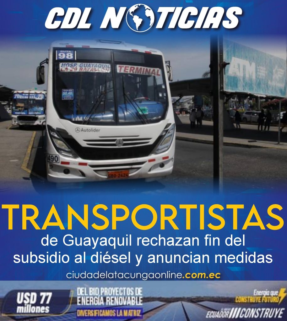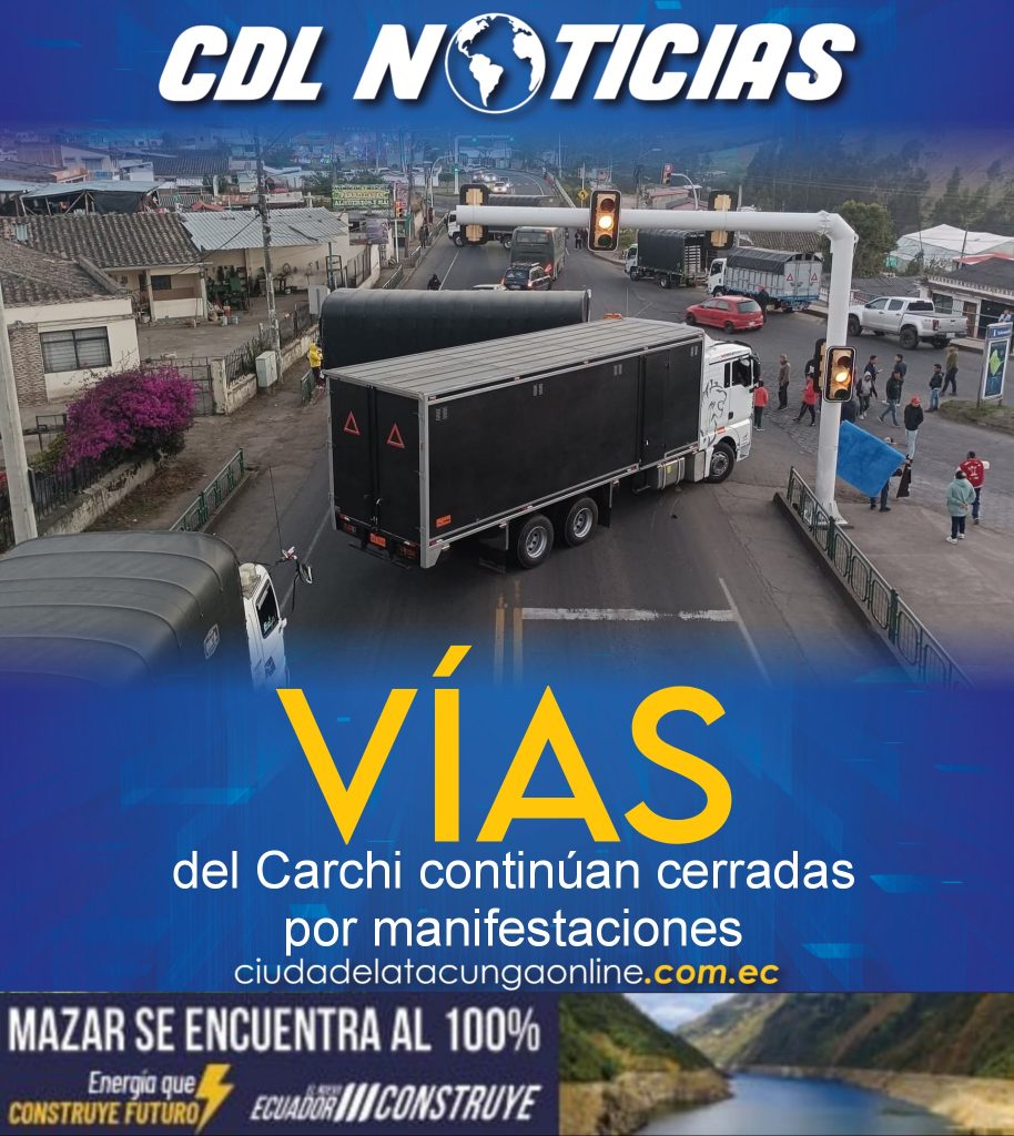 CDL Noticias PUBLICIDAD https://ciudadelatacungaonline.com.ec/wp-content/uploads/2025/08/PROMO-POSGRADOS.mp4https://ciudadelatacungaonline.com.ec/wp-content/uploads/2025/08/PROMO-UTC-General.mp4https://ciudadelatacungaonline.com.ec/wp-content/uploads/2024/10/Táctico-SP-16-9-SUBS.mp4 PUBLICIDAD PUBLICIDAD https://ciudadelatacungaonline.com.ec/wp-content/uploads/2025/09/Video-nuevas-obras-de-transmisión.mp4 Este lunes 15 de septiembre, en las provincias de Pichincha y Santo Domingo de los Tsáchilas hay cierres viales en respuesta a la eliminación del subsidio del diésel. Una de las carreteras afectadas por la obstaculización es la Panamericana Sur. A la altura del sector San Carlos, en el cantón Mejía, cientos de carros no podían avanzar. En Alóag, parroquia del cantón Mejía, en la provincia de Pichincha, hay camiones atravesados en la vía. La Gobernación de Cotopaxi indicó que había funcionarios estatales atrapados en el tráfico que no podían avanzar desde Quito a Latacunga. Esta última ciudad es la sede temporal del Ejecutivo. CarchiEn la provincia del Carchi, varias vías también están bloqueadas, entre esas: Bolívar – Piquiucho, San Gabriel – La Paz, La Paz – Bolívar, Tulcán – Huaca y Panamericana Norte (sector del Obelisco). Normalidad en otras ciudades En ciudades como Quito, Guayaquil, Loja, Manta, Portoviejo o Cuenca no hay manifestaciones y el movimiento ciudadano transcurre sin alteraciones. Eliminación del subsidio La eliminación del subsidio al diésel, que comenzó a aplicarse el sábado 13 de septiembre, elevó el precio del galón de 1,80 a 2,80 dólares y forma parte de una política que, según el Gobierno, permitirá un ahorro anual de 1 100 millones de dólares. La supresión de los subsidios de los combustibles es una de las decisiones políticas más sensibles en Ecuador que ya intentaron tomar sin éxito los expresidentes Lenin Moreno (2017-2021) y Guillermo Lasso (2021-2023), quienes tuvieron que recular ante las dos olas de protestas más grandes acontecidas en los últimos años en el país, lideradas en ambas ocasiones por el movimiento indígena. Noboa dio el paso de eliminar el subsidio al diésel tras haberlo hecho ya el año pasado con las gasolinas Extra y Ecopaís, las de mayor consumo en la nación. Para paliar los efectos de la eliminación del subsidio, la Administración de Daniel Noboa entregará esta compensación económica por ocho meses y en mayo de 2026 evaluará si extiende la bonificación cuatro meses más. Los pagos serán de entre 400 y 700 dólares al mes para cada unidad de transporte intercantonal, 600 dólares para las intraprovinciales y 1 000 dólares para las interprovinciales. El Ejecutivo destinará 68,7 millones de dólares este año para cubrir estas transferencias. https://ciudadelatacungaonline.com.ec/wp-content/uploads/2025/08/PROMO-POSGRADOS.mp4https://ciudadelatacungaonline.com.ec/wp-content/uploads/2025/08/PROMO-UTC-General.mp4https://ciudadelatacungaonline.com.ec/wp-content/uploads/2024/10/Táctico-SP-16-9-SUBS.mp4