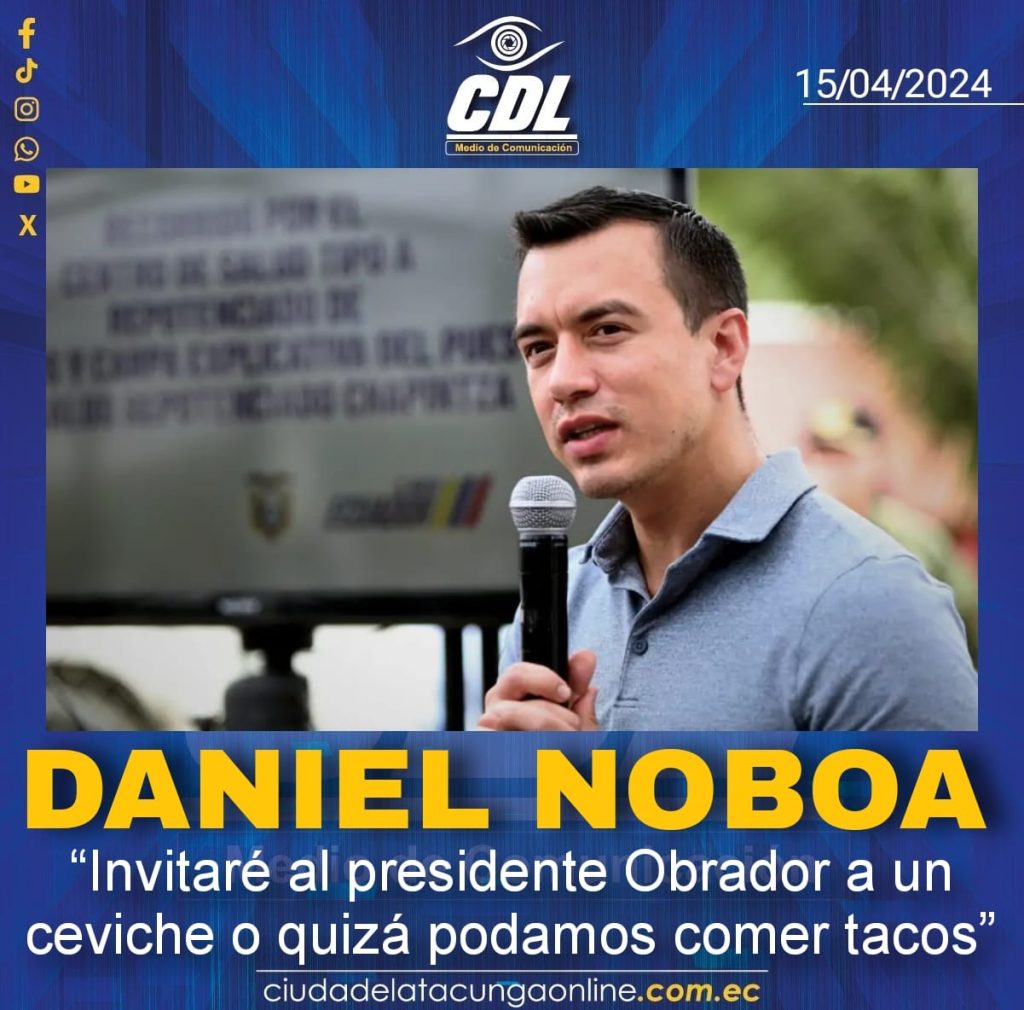 🔴 #Atención || En entrevista con el medio internacional @SBSNews, el presidente @DanielNoboaOk dijo que “invitará a tomar un ceviche” al presidente de México, Andrés Manuel @lopezobrador_, y podrán “comer tacos juntos” para dialogar y superar esta crisis diplomática.