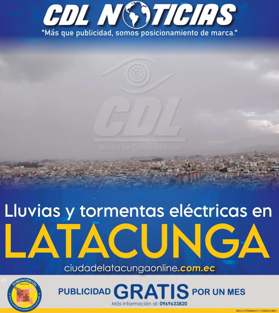 El Instituto Nacional de Meteorología e Hidrología (INAMHI) y el ECU 911 emitieron una alerta por la presencia de lluvias acompañadas de tormentas eléctricas en distintos sectores del cantón Latacunga durante las próximas horas.