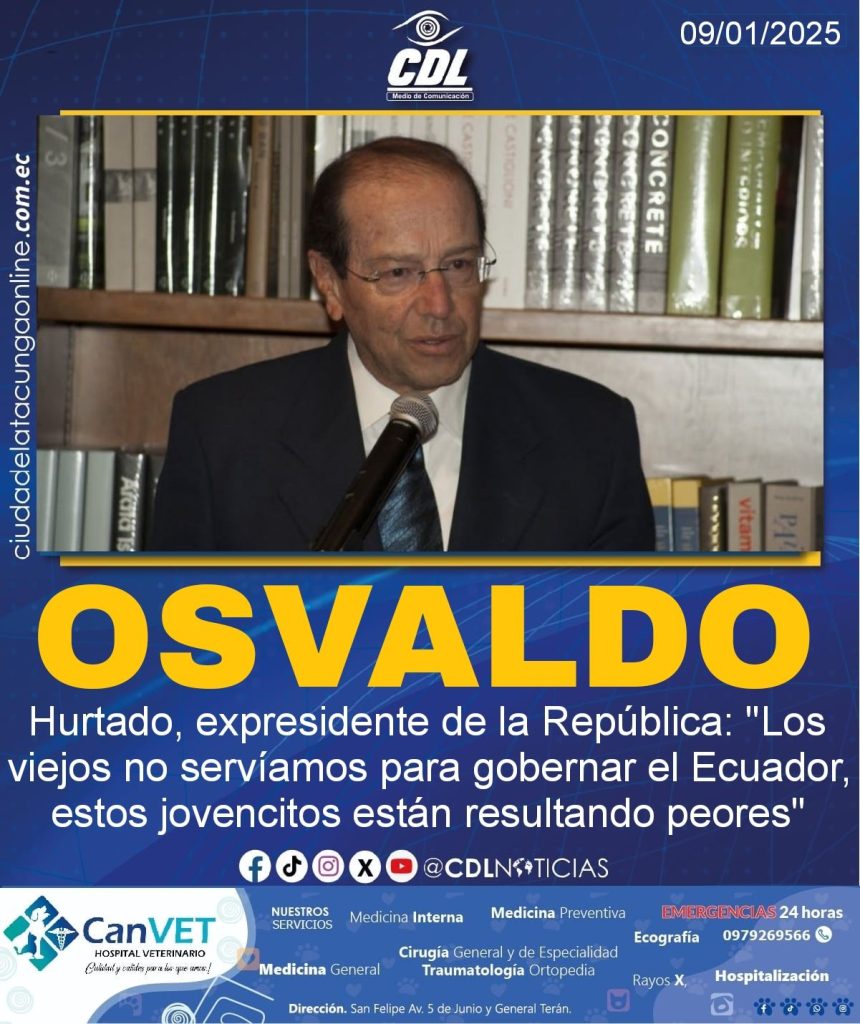 Osvaldo Hurtado, expresidente de la República del Ecuador, se refirió con duros términos la mañana de hoy, jueves 9 de enero de 2025, respecto al conflicto que mantienen el presidente Daniel Noboa y la segunda mandataria Verónica Abad y también a todo lo actuado por el Jefe de Estado que ha conllevado a un caos jurídico.