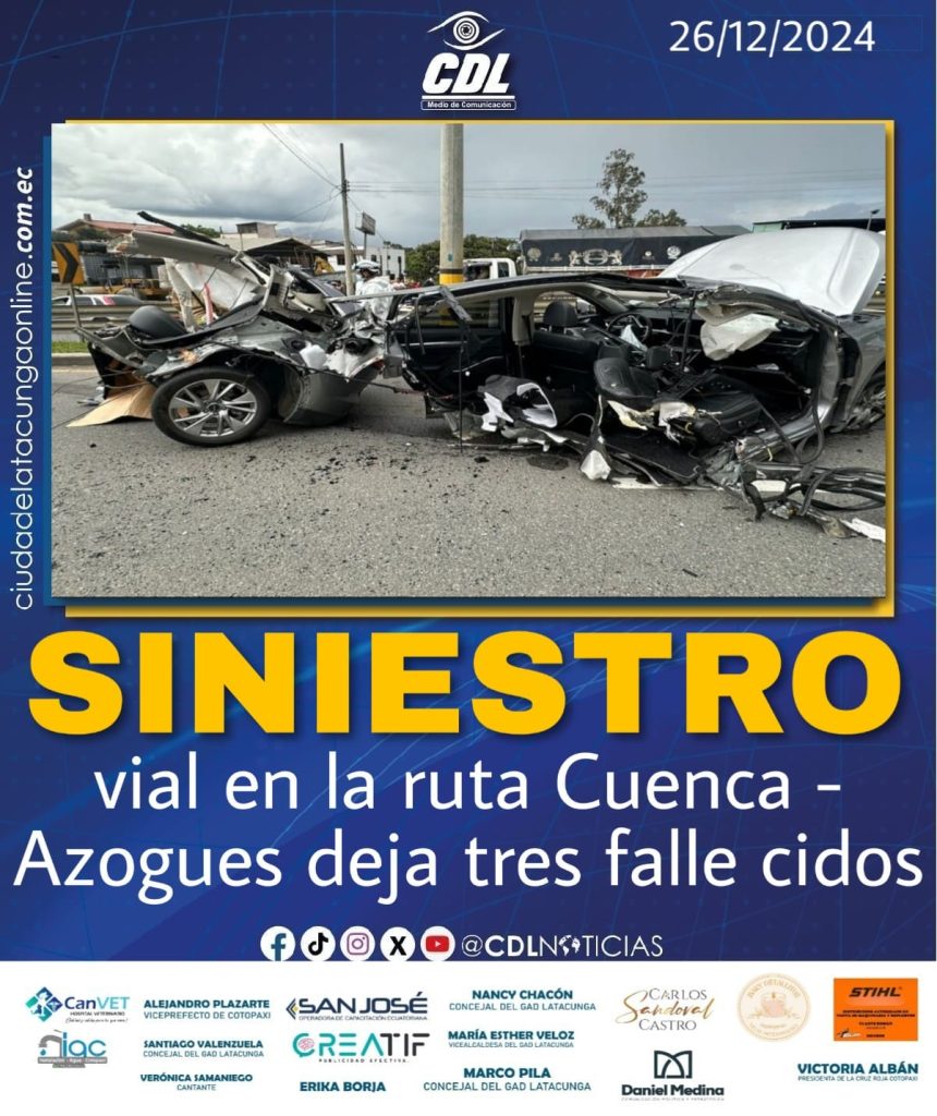 Un aparato siniestro vial dejó tres personas fallecidas en la vía Cuenca-Azogues, en la zona posterior a la Universidad del Azuay.