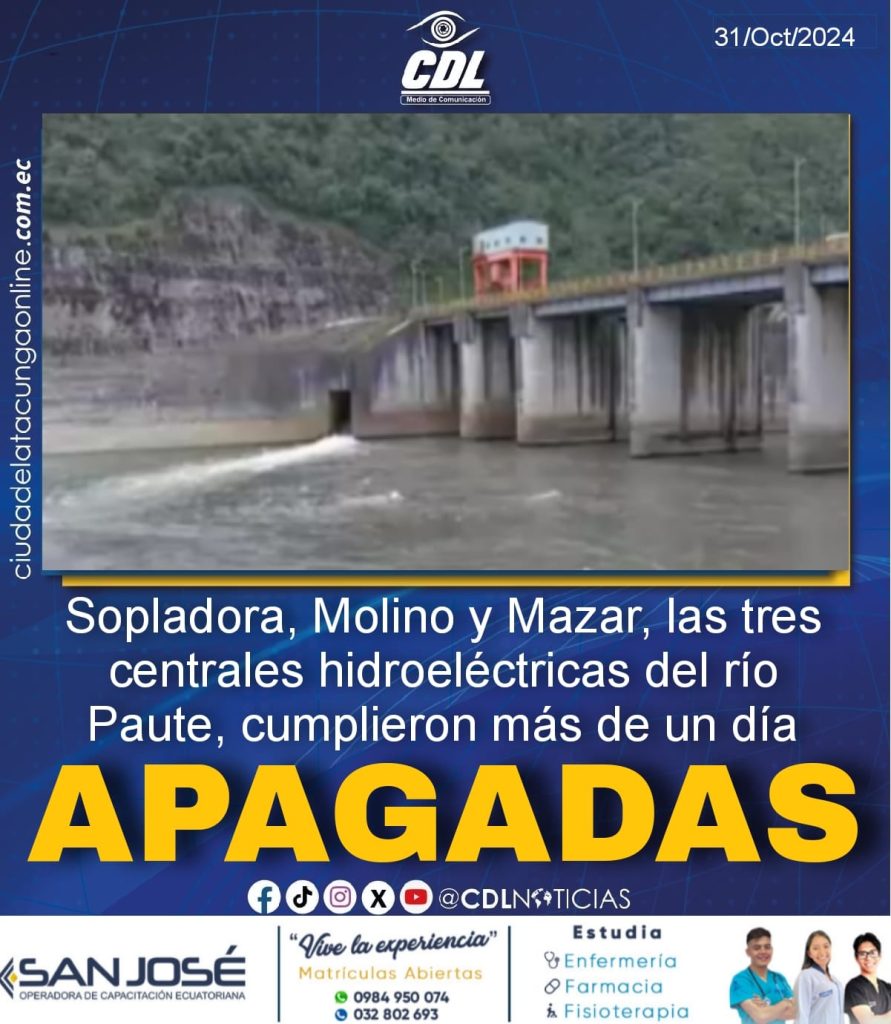 Las autoridades han dispuesto que las tres centrales hidroeléctricas del río Paute permanezcan apagadas el mayor tiempo posible para que sus embalses se recuperen.